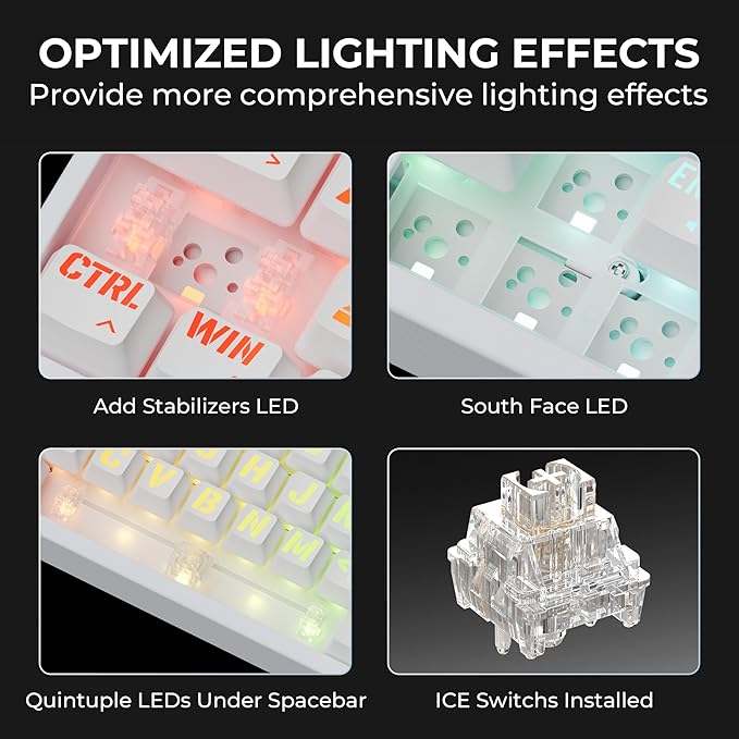 - 【Gasket-mounted Mechanical Keyboard &PCB Single Key Slotting】The M67 white mechanical keyboard features a gasket structure, and PCB single key slotting, better optimizes resilience and stability, making the hand feel softer and more elastic. With four layers of filling silencer fills the gap between the PCB, the positioning plate and the Switch. It's the ideal choice for a satisfying,low-noise typing experience, whether in an office or gaming environment.