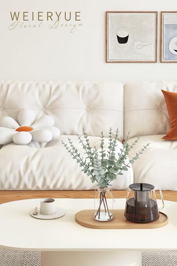 - 【Multi-purpose decoration】Whether you're aiming for a rustic farmhouse style or a minimalist modern look, this artificial eucalyptus leaf adapts perfectly. It is suitable for decorating the kitchen, bathroom, bookshelf, cabinet, work desk, coffee table, dining table, party venue, wedding venue or farmhouse.They are easy to match anywhere in your home.