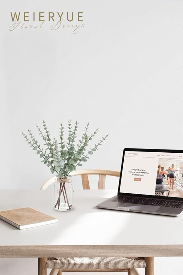 - 【Maintenance-free】The acrylic water ensures that the eucalyptus leaf adheres well to the glass vase, so you don't have to worry about it falling off or spend time arranging them. The artificial green plant stems require no water, sunlight, or fertilizer, will never wilt or shed, stays green year-round.Eucalyptus leaves are easy to clean; simply wipe with a soft dry cloth to keep them neat and tidy.