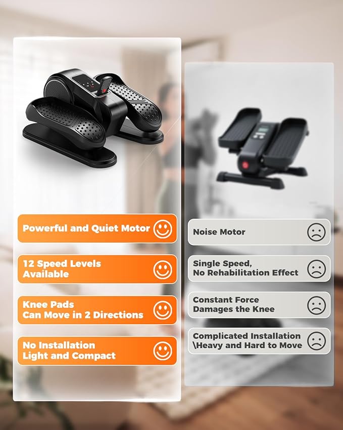 - 【Silent Exercise & Portable Design】: Elliptical exercise machine featuring advanced noise reduction technology, the Kjocie under desk elliptical ensures an ultra-quiet workout. Designed for seniors, it operates silently even at high speeds, avoiding disturbance to colleagues, elders, babies, or pets. Its compact, lightweight build suits home and office use, enabling exercise anywhere