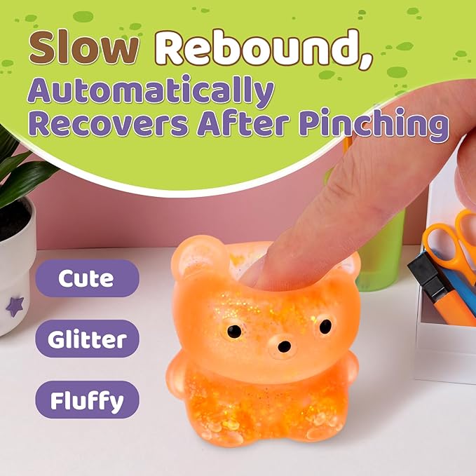 12Pack Fidget Toys Squishy ,Cute Bear Squeeze Ball , Stress Balls for Stress Relief,Pull Stretch Classroom Prize Party Favors Toys for Kids