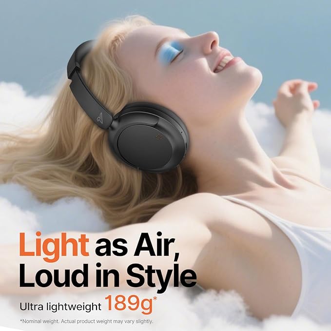 - Featherlight Comfort, Just 189g*: Weighing only 189g*, Hyper GO bluetooth headphones are 20% lighter than typical ANC models. Designed with an adjustable headband and ultra-soft ear cushions, they offer a customized fit and all-day comfort — perfect for work, study, or long flights. (*Nominal weight. Actual product weight may vary slightly.)