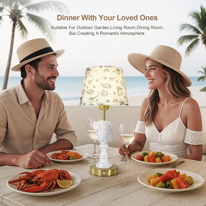 - BUILT LITHIUM BATTERY: Conch shell cordless lamp,Built-in 4400mah rechargeable battery, We are equipped with one 3 watt light bulbs. No need to purchase separately and can be used after installation and full charge. Charging time is 4-6 hours. it can be used for at least 20 hours in the high light state and at least 30 hours in the medium light state,at least 40 hours in the low light state.
