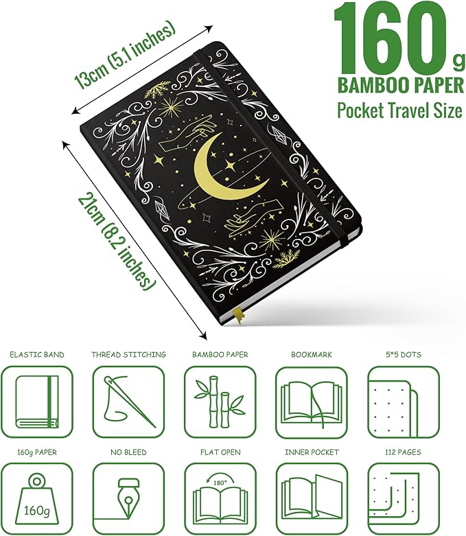 - Premium Ultra Bamboo Paper – 160gsm, No Bleed-Through: Enjoy a luxurious writing experience with ultra-thick 160gsm bamboo-based paper resists bleed-through and ghosting. Perfect for fountain pens, markers, gel pen and watercolor touches.