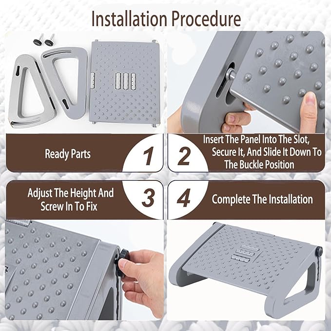 - 【Scientific Design】: This Footrest is Designed to Provide Ergonomic Support for Your Feet, Promoting Better Posture And Reducing Strain On Your Legs And Back. Perfect for Long Hours of Sitting At Your Desk.