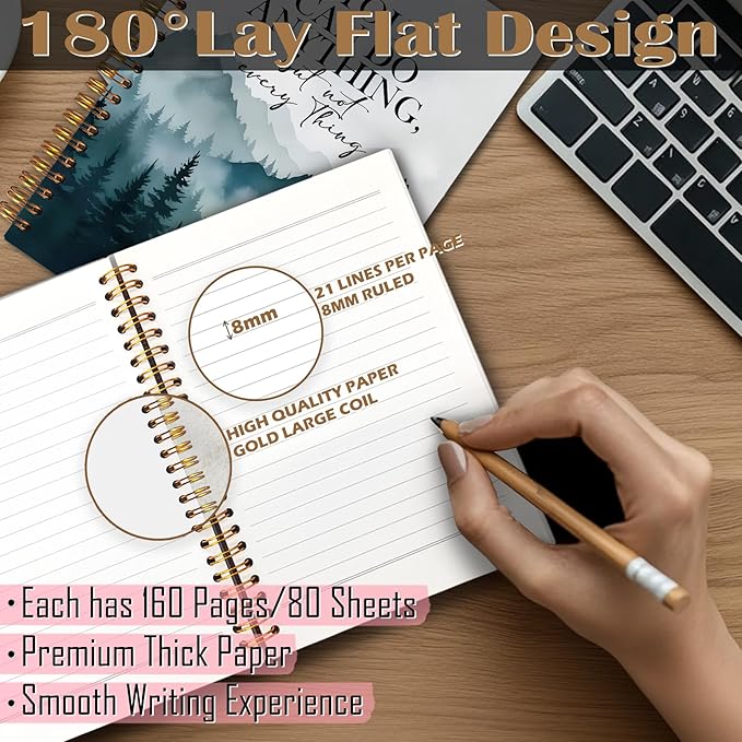 - Durable Spiral Binding:Designed to last, the sturdy spiral binding allows the notebook to lie flat, making it easy to write on both sides of each page. The metal coil is built for durability, ensuring the notebook holds up through everyday use.