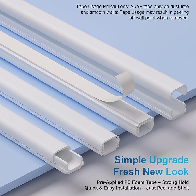 - Easy to Customize, Paintable Finish: This cable concealer is fully paintable and cuts easily for a perfect fit. No connectors needed—stick and press. A smart cable cover for fast, clean cord management anywhere in your home or office