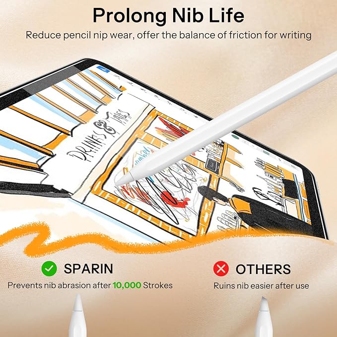 - HD Clarity&Pencil Tip Protector: 95% light transmittance ensures colors stay vibrant, unlike foggy other matte films. The uniform micro-grit texture delivers 92% paper-touch friction and minimizes pencil tip wear, extending the life of your Apple Pencil