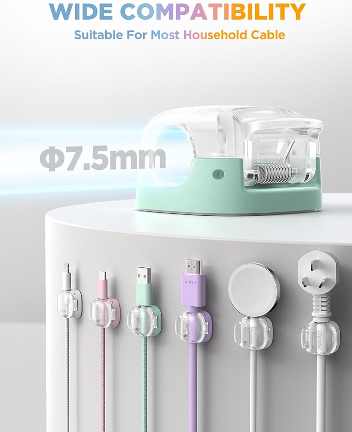 - 7.5mm Universal Port: Holds virtually any cable—Type-C, Lightning, watch chargers, Kindle, HDMI, USB, MacBook adapters, Ethernet, and more. This cable clips keep your space clean, connected, and free of clutter.