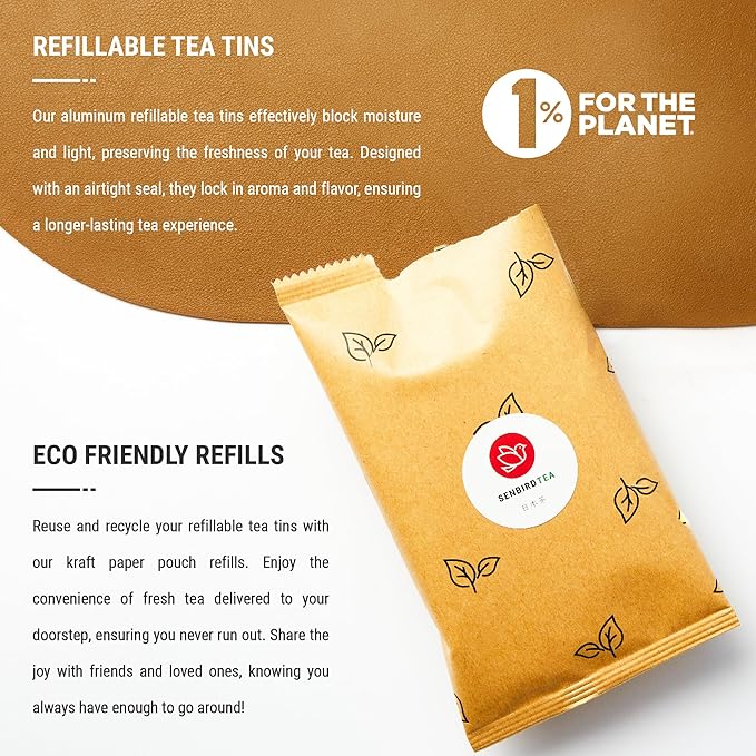 - Sustainable Tea Drinking - Refillable Airtight Tea Tins minimize packaging waste. Locks out moisture & light, preserving tea freshness. Refill your tins with our Refill Pack. Proud member of 1% for the Planet