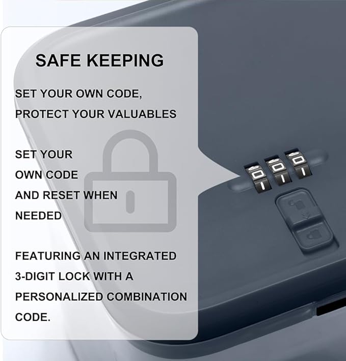 - 【Keyless Lock Box】: 3-digit code set/reset in seconds without keys; secure yet accessible storage for phones, medication , snacks, cosmetics, skincare products, office supplies, or small personal items. See-through body allows instant content visibility. The secure lock ensures your items stay safe while remaining easily accessible