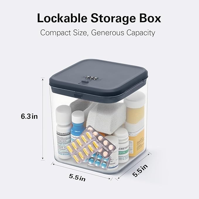 - 【Childproof Pill Organizer】: This lockable storage box with code keeps prescriptions, pills, vitamins, or unhealthy snacks securely stored. You can use it as a medicine lock box/pill organizer box to securely store medicines and pills, a refrigerator lock box for snacks and candy, a lock box for medication to control access, or a phone lock box to reduce screen time. It also functions as a safe storage box to keep children away from dangerous items like scissors or chemicals.Ideal for office, home, college, dorms, travel or daily use