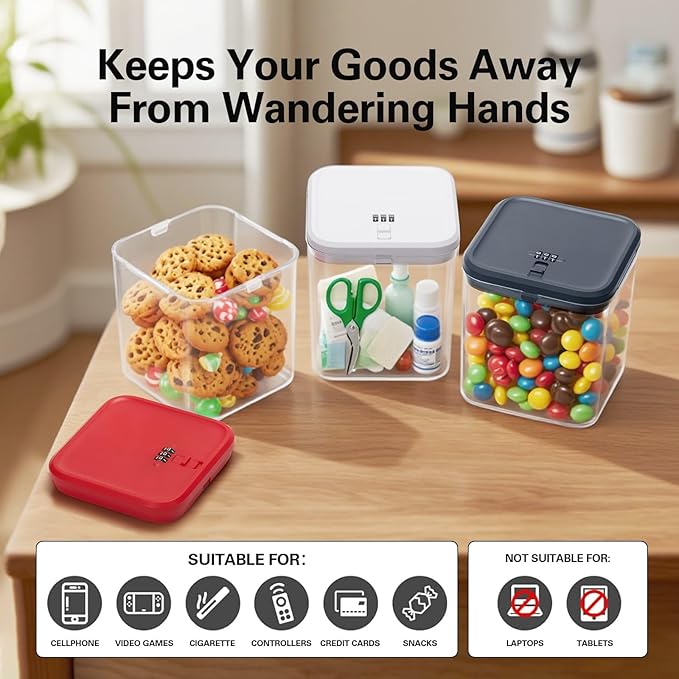 - 【Build Better Habits】: Reduces Screen/Snack Time. Functions as a "phone lock box" or "refrigerator lock box" to reduce screen time/electronic device use and snack overconsumption, aiding focus, learning, and healthier eating habits. It’s an effective tool for maintaining a healthy diet and lifestyle. Also ideal for restricting cigarettes, sweets, or other temptations