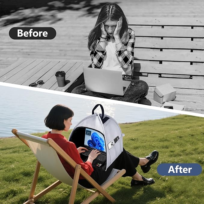 - Easy to carry:the laptop sun shade for working outside can be folded into a small round bag for easy carrying in a schoolbag or suitcase
