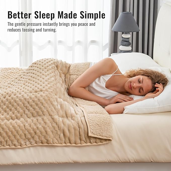 Uttermara Fleece Weighted Blanket for Adults Queen Size 20lbs, Soft Sherpa Weighted Blankets for Sleeping and Calming, Fuzzy Heavy Blanket for Bed and Couch, 60 x 80 Inches, Light Brown