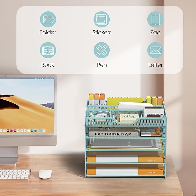 - Quality Materials and Superb Craftsmanship-Featuring a lightweight and durable metal mesh construction with a sturdy frame and powder-coated finish that ensures the desktop file manager won't bend or break when holding large quantities of paper, files and books, the file manager has a smooth finish that complements the office's work decor