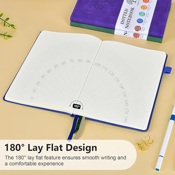 - 【160 PAGES PREMIUM DOTTED NOTEBOOK】:PERCUN A5 dotted journal features 160 pages of smooth, acid-free dotted grid paper (5.9” x 8.5”), ideal for bullet journaling, note-taking, sketching, and planning. The thick 100 GSM paper resists ghosting and bleed-through, ensuring your ideas stay crisp with pens, markers, or fountain inks.