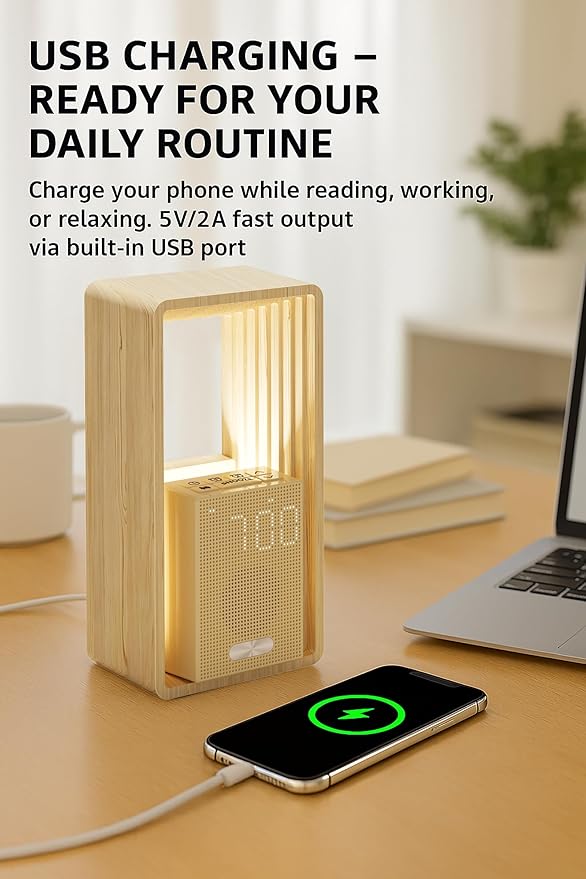 - USB Charging & Gift-Ready: Built-in 10W USB port charges your phone overnight. Compact design fits small spaces and makes a thoughtful gift for holidays and birthdays.