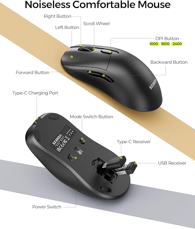 - Battery That Endures: The seenda keyboard and mouse features built-in rechargeable batteries (keyboard 500mAh/mouse 300mAh). Get 100hrs active use or 300-day standbyn - charge via Type-C. No more frantic AA battery hunts before critical meetings