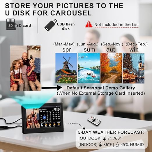 - 【Clock only supports a 2.4G WIFI, Not 5G WIFI】【Worldwide Weather & Network Time Sync】:Synchronizes time via network with <1 second deviation. Built-in temperature sensor shows indoor and outdoor temps. Supports manual location via city. View current and 5-day weather forecast with calendar and clock modes