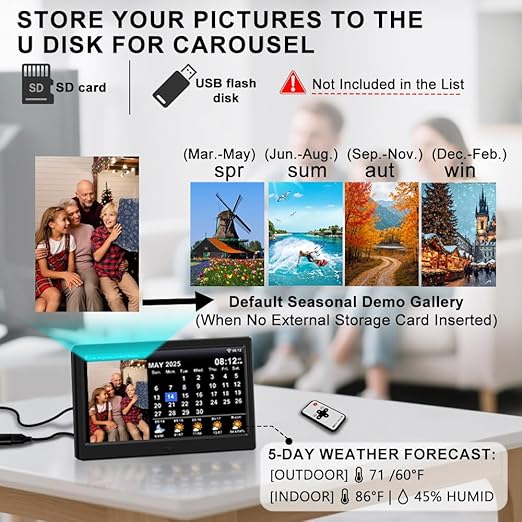 - 【Clock only supports a 2.4G WIFI, Not 5G WIFI】【Worldwide Weather & Network Time Sync】:Synchronizes time via network with <1 second deviation. Built-in temperature sensor shows indoor and outdoor temps. Supports manual location via city. View current and 5-day weather forecast with calendar and clock modes