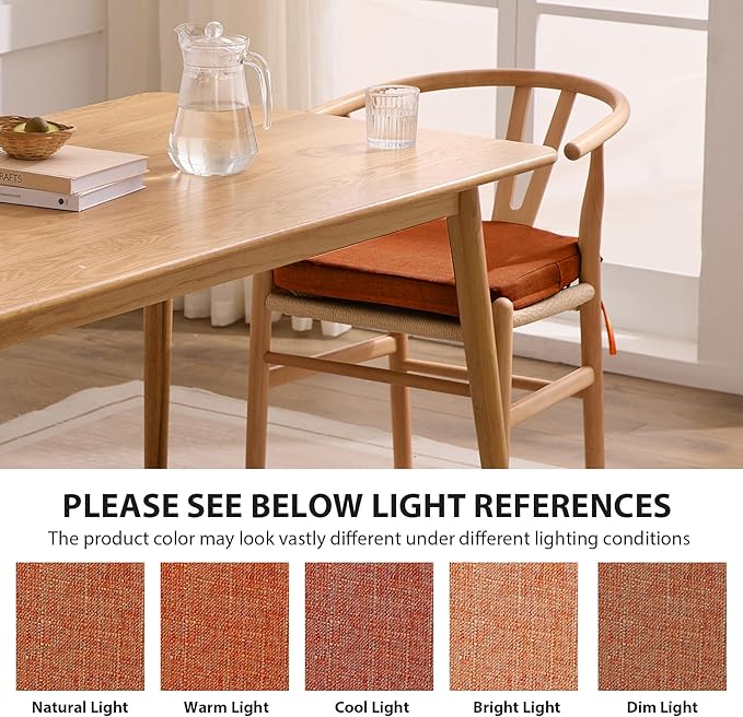 - [Stay-Put Design] Each chair cushion features a non-slip backing with anti-slip dots that provide a strong grip, ensuring stability during use. Additionally, the chair cushions for dining chairs come with adjustable ties that can be easily attached to the back of your chairs to prevent movement. These chair pads for dining chairs stay perfectly positioned whether you're enjoying family dinners or kids are wiggling during homework time.