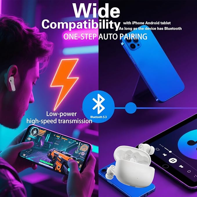 - 【Bluetooth 5.3Compatibility】:Adopt the advanced Bluetooth 5.3 technology. which greatly improve the transmission speed and providing you with a low-latency listening experience.compatible with with IOS, Android, Windows systems, and all Bluetooth devices, you can connect your PC, laptop, Pad and other devices.
