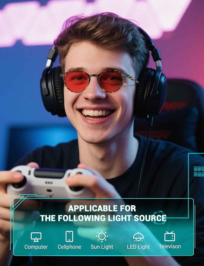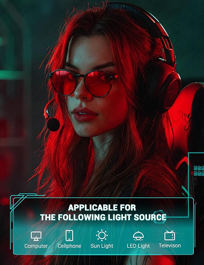 - Red Lens Blue Light Blocking – Specialized red-tinted lenses filter high-energy blue and green light from digital screens, supporting a more comfortable viewing experience