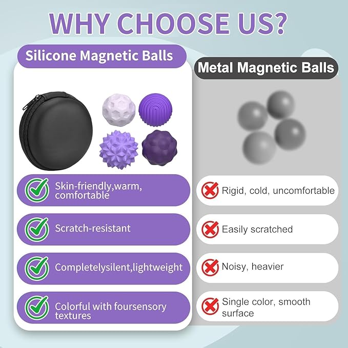 - 【Safety& High Quality】Our silicone magnetic sensory fidget balls crafted from high-quality, food grade silicone + high-performance magnets. And has undergone rigorous quality testing to ensure every piece is durable and long-lasting. These silicone magnetic balls has passed CPC certified for safety. Comfortable & skin-friendly silicone material, easy to clean.