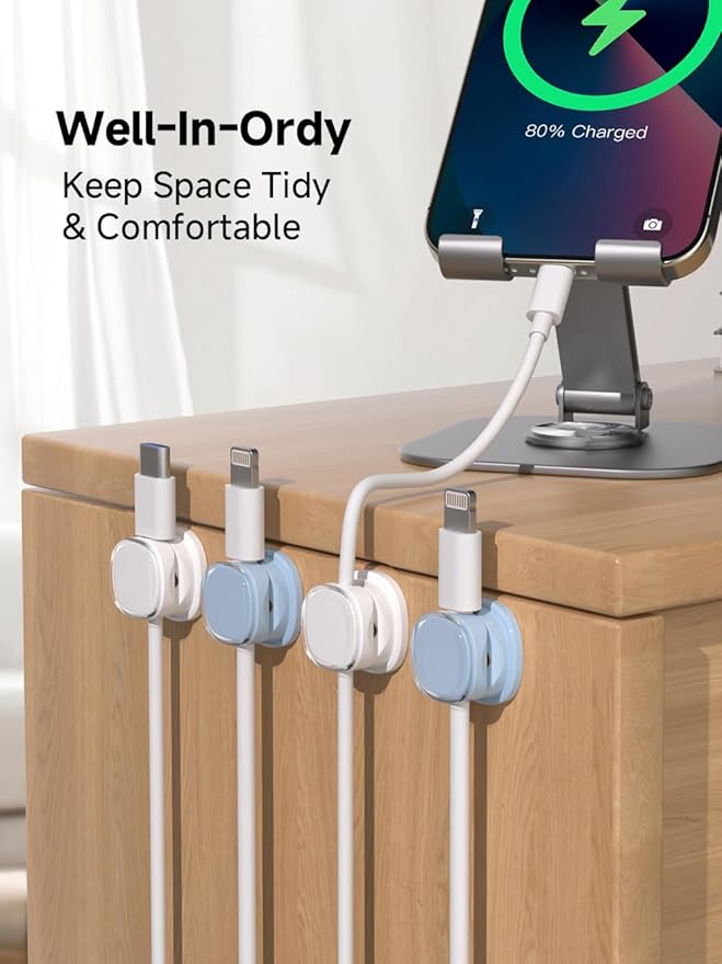 - Hold Most Cords: Diameter of about 0.3 inch (7.5mm) allows to hold most cords, such as Type-C charger cords, lightning cords, HDMI cords, USB cables, PC Notebook power wires, network wires, mouse cords, keyboard cables, headphone cords