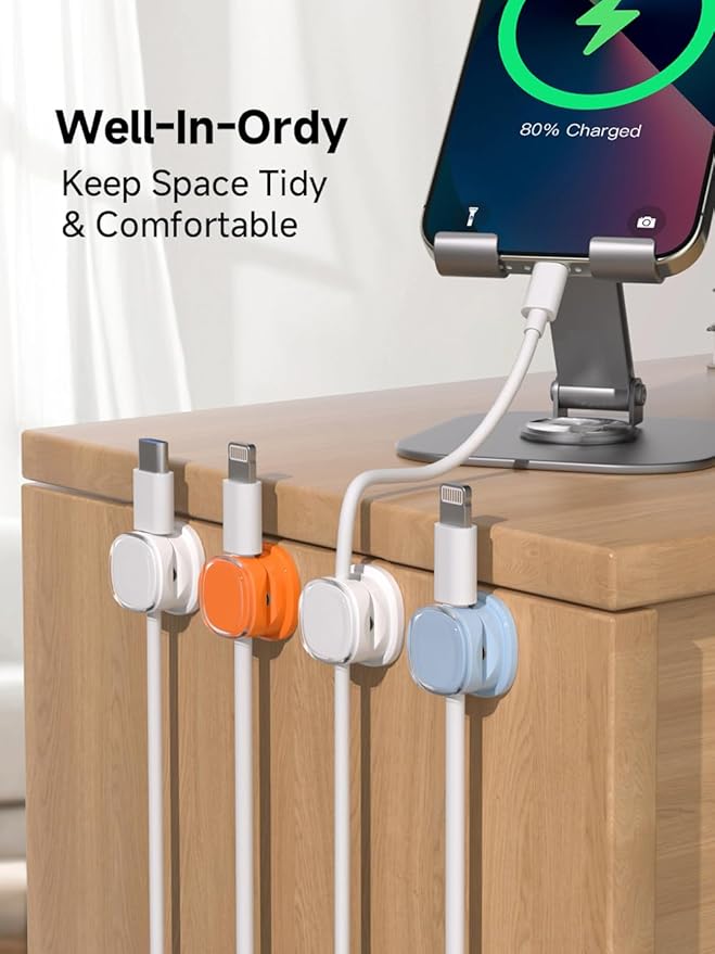 Magnetic Cable Clips, Adjustable Cord Holder Management, Adhesive Wire Keeper Organizer for Home Office Desk Phone PC Car Wall Desktop Nightstand Appliance (9-PCS White_Orange_Blue)