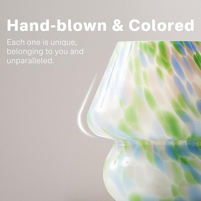 - 【Small Lamp with Wide Application】Not just a decorative mushroom night light, this versatile lamp also serves as a stylish modern glass lamp for sideboards, bedrooms, living rooms, nurseries, dining rooms, coffee shops, bars, and more. It's an excellent gift for holidays, birthdays, Valentine's Day, Christmas, and Thanksgiving.