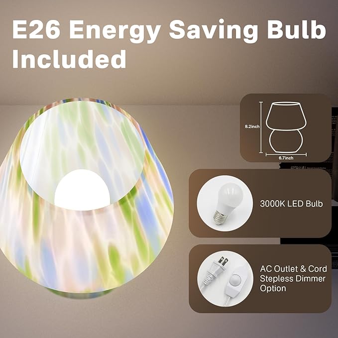 - 【Unique Hand-Blown Bedside Lamp】Crafted from glass with a timeless silhouette, this bedside lamp showcases a hand-blown glass technique, making each DAWNWAKE lamp one-of-a-kind. It combines artistic craftsmanship with a high-quality stained ceramic base, resulting in a beautifully made lamp in the Art Nouveau style.