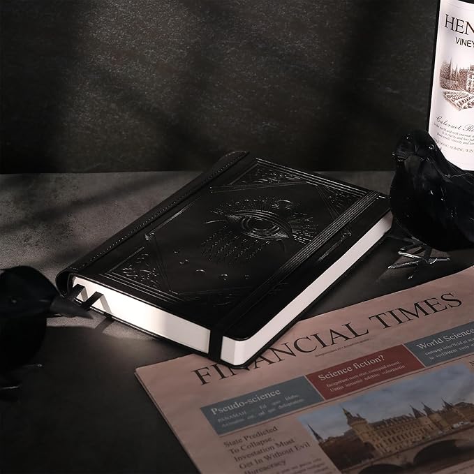 - 【Hardcover Leather Journal】Our hardcover leather notebook uses faux leather with a silky touch, the mystic Evil Eye cover design gives the notebook a deep sense of mystery and vintage feeling, bring good luck and dispel negative energy, the unique spine-stitched binding adds to the solidity of the notebook, and comes with a pen that can fits in the spine.