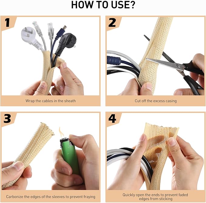 - 【Wire Cover for Many Cables +Easy to cut 】The cable tube can be easily cut with scissors. Length: 2 x 5 feet. Diameter: 0.75-1.2 inch. They can hold different sizes of cables for you. Especially suitable for corners (it is recommended to cut the cutting position with fire after cutting to prevent spreading)