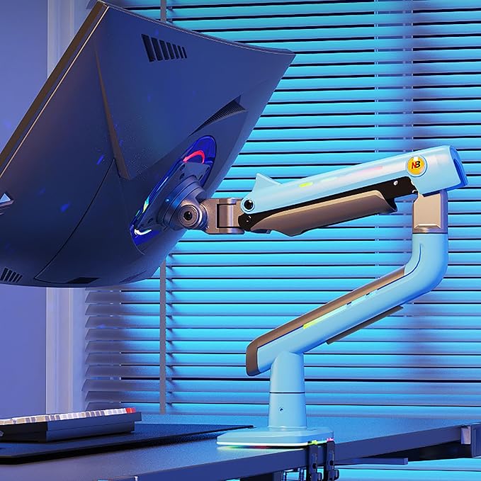 NB Gaming Monitor Arm or for 32 to 60 Inches Screen, Load up to 20 kg, VESA 75/100, RGB-Light, Heavy Duty, Multi Angle Adjustable, Premium Aluminum, Blue