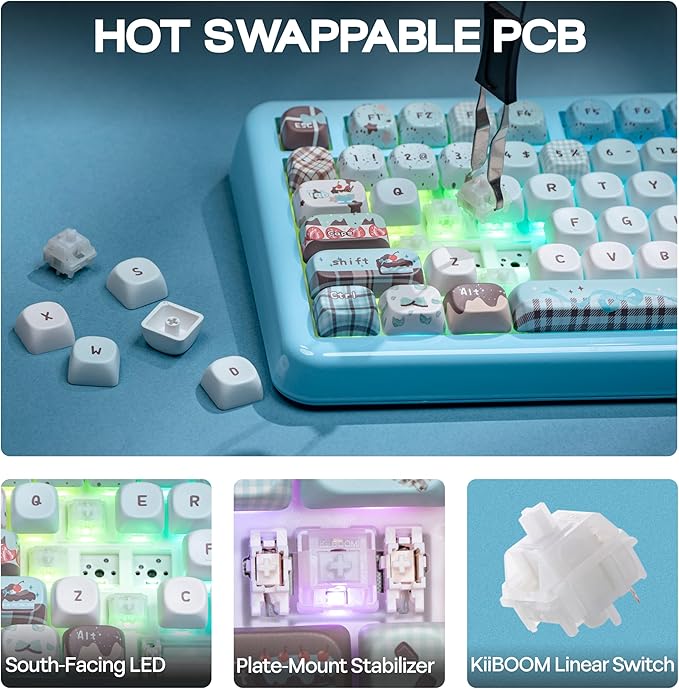 KiiBoom Phantom81 Lite 75% Gasket Mechanical Keyboard, QMK&VIA Programmable, 3 Modes Wireless Gaming Keyboard, RGB Backlights, ABS Case + UV Tech, Hot-Swappable for Windows/Mac/Linux (Blue)