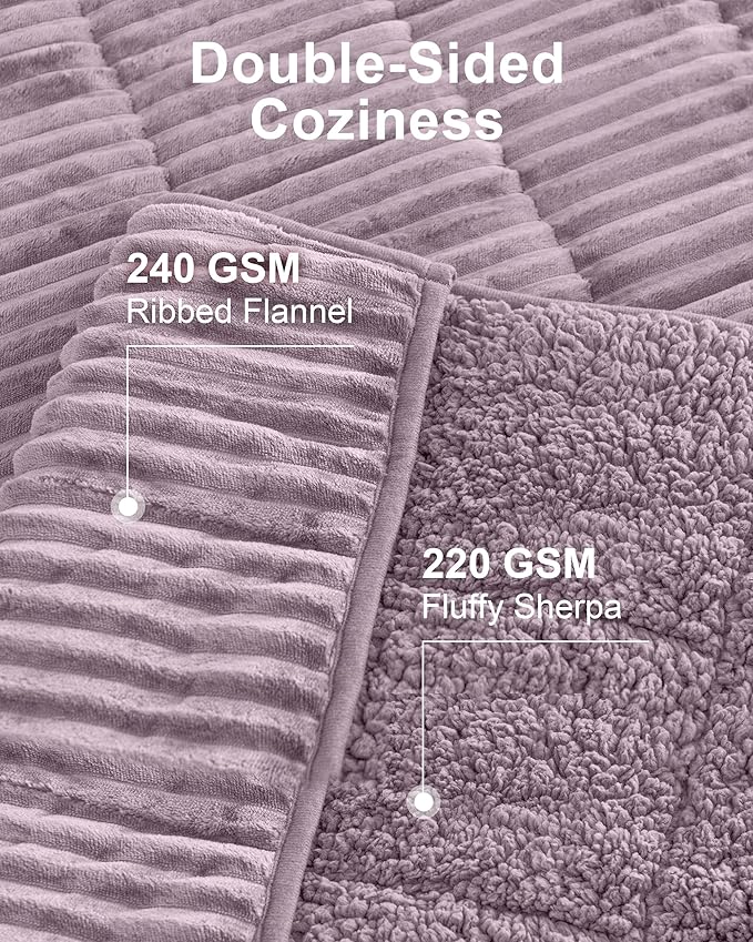 Sherpa Fleece Adult Weighted Blanket 20lbs with Ribbed Stripes, Dual Sided Fuzzy Warm Blanket for Couch Bed Sofa, Heavy Thick Blankets with Ceramic Beads Great for Sleep, Light Purple, 60" x 80"