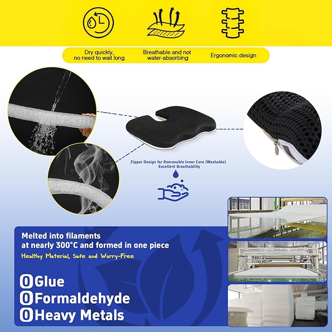 - Breathable Mesh: The cushion features a breathable mesh cover that promotes air circulation, keeping you cool and dry during extended periods of sitting.