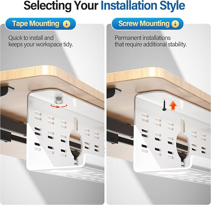 - 【Complete Organization Kit】Includes everything you need: 2 cable trays, 5 tapping screws, 5 adhesive pads, and 5m of cable ties. Perfect for offices, kitchens, studios, and outdoor use—keeping any space perfectly organized.