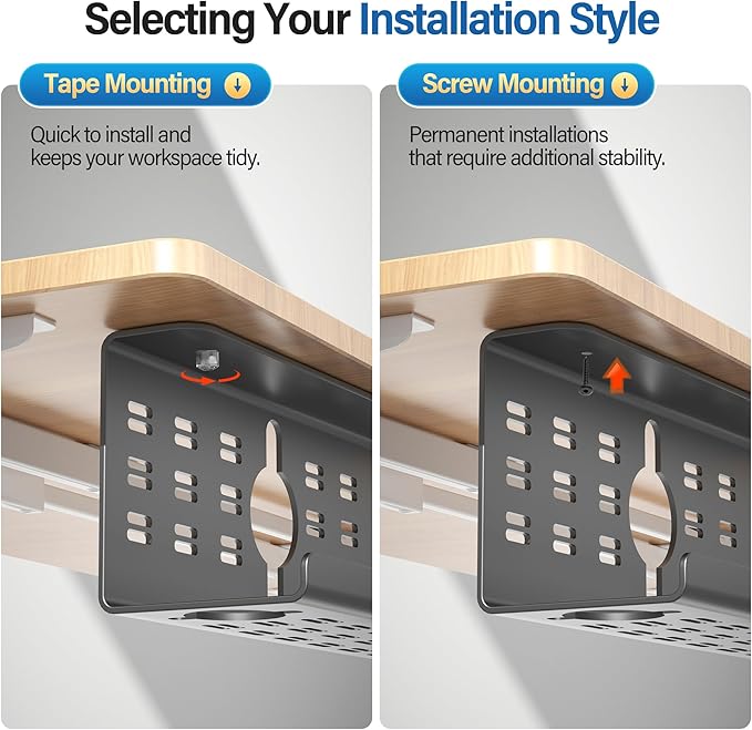 - 【Complete Organization Kit】Includes everything you need: 2 cable trays, 5 tapping screws, 5 adhesive pads, and 5m of cable ties. Perfect for offices, kitchens, studios, and outdoor use—keeping any space perfectly organized.