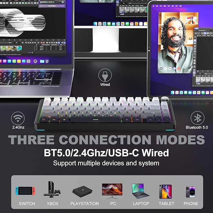 - VERSATILE CONNECTIVITY: Features tri-mode connection with Bluetooth 5.0, 2.4GHz wireless, and USB-C cable options, allowing connection with up to 5 devices simultaneously for seamless multitasking