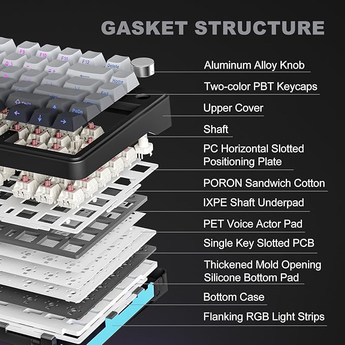- PREMIUM KEYCAPS: Side-engraved PBT keycaps with double injection molding and heat sublimation process offer durability, sweat resistance, and enhanced RGB light transmission