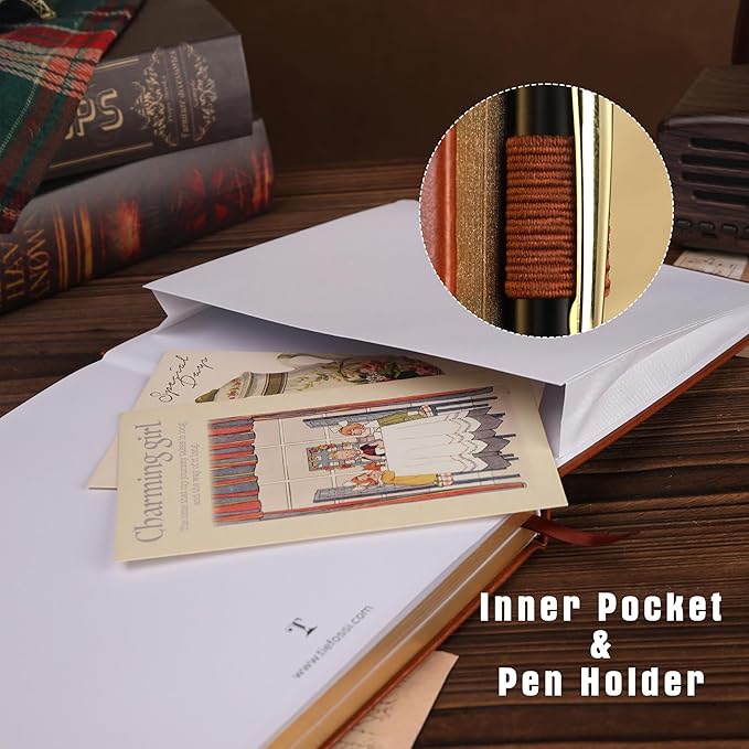 - 160 NUMBERED PAGES: This dot notebook has 160 numbered pages for easy recording. The gold-edged pages add a touch of elegance. The notebook also features an elastic band, two ribbons, an inner pocket, and a pen holder for your convenience.