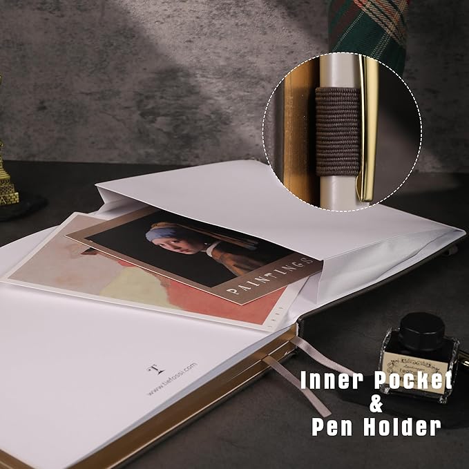 - 160 NUMBERED PAGES: This dot notebook has 160 numbered pages for easy recording. The gold-edged pages add a touch of elegance. The notebook also features an elastic band, two ribbons, an inner pocket, and a pen holder for your convenience.