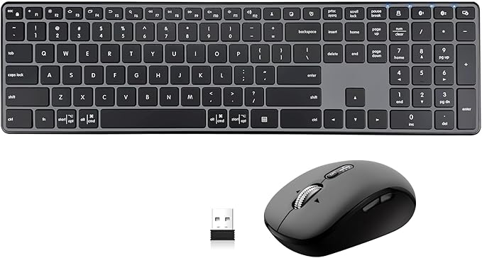 - Keyboard & Mouse Bundle: Enjoy a convenient wireless keyboard and mouse set with a full layout and ultra slim design, perfect for a sleek workspace.Experience the quiet wireless keyboard and mouse combo with low-profile and comfortable experience. Warm tips---you can place 1 or 2AA batteries to use (depending on your preference of mouse weight).