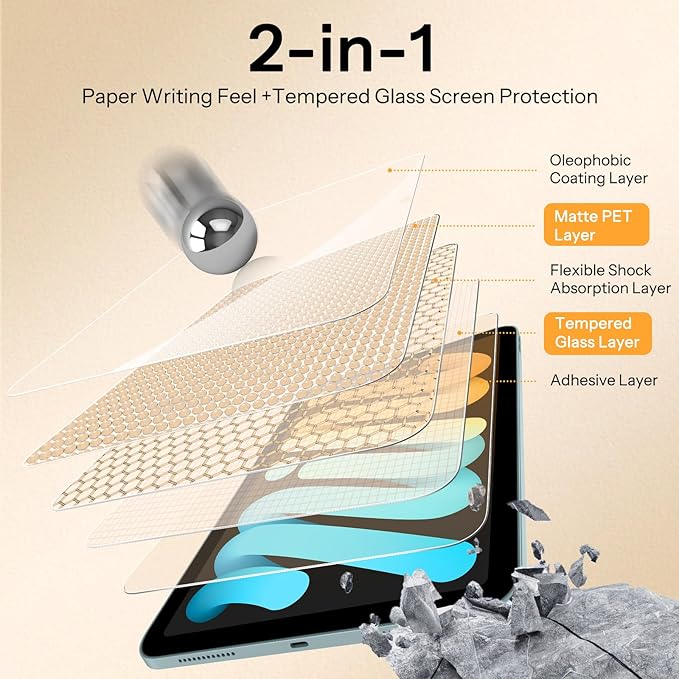 - Precise Laser Cut: The edges of the screen protector fit perfectly to the iPad Mini 7/iPad Mini 6 and case friendly
