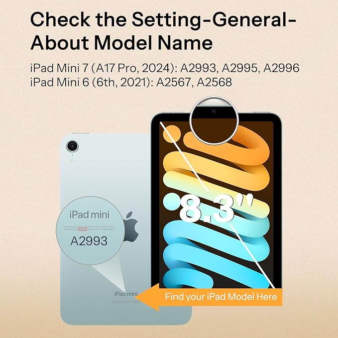 - Compatible with iPad Mini 7 2024 (A17 Pro) 8.3 inches and iPad Mini 6 2021 8.3 inches, Please check before paying to avoid buying wrong size