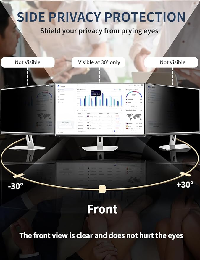 - New Upgraded Protection Anti-peeping Film:With its innovative 360°privacy design,crystal clear display technology allows you to enjoy a clear and vibrant screen from the front,while preventing others from seeing your screen contents.Our innovative technology ensures that your privacy is always protected
