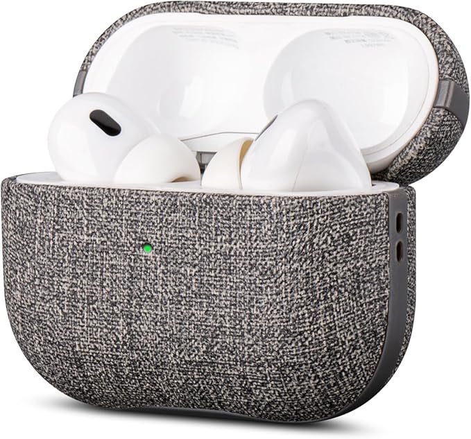 LOPIE Case for AirPods Pro 2nd Generation - Handmade AirPods Pro 2 Case Cover with Lanyard - Made of Vegan Leather - Canvas Style - Protective Hard Shell Cover - Wireless Charging Compatible - Gray